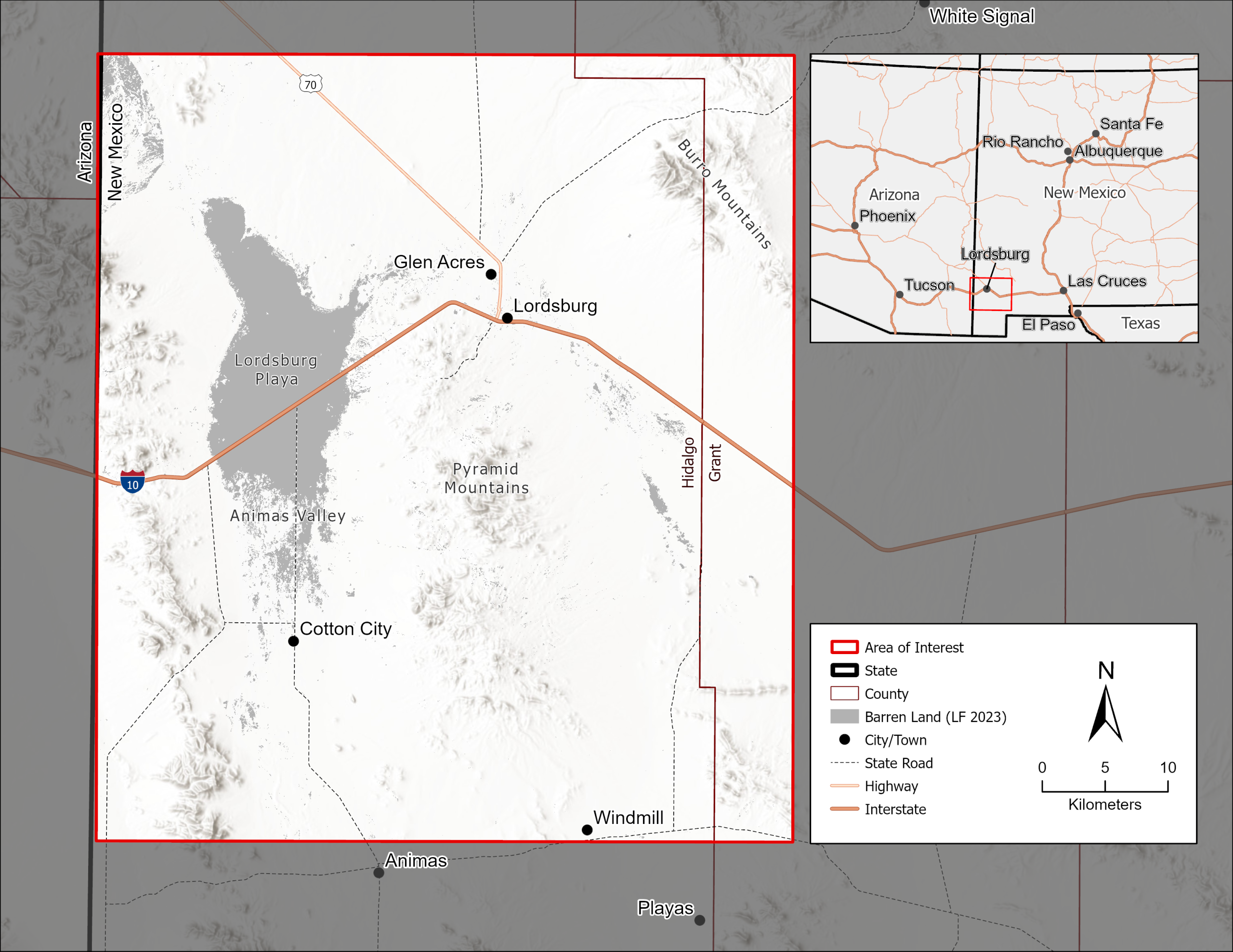 The Lordsburg Playa in southwestern New Mexico is one of the most active dust-storm corridors in the United States, with hazardous events contributing to multiple fatal crashes on Interstate 10 over the past decade. Dust storms here are shaped by a changing climate, shifting vegetation patterns, and land-surface conditions that can expose large areas of loose, dry soil. This project explores how vegetation loss, soil moisture decline, and broader desertification trends relate to dust-storm activity across the playa. By analyzing more than a decade of satellite imagery, land-cover data, and weather alerts, the research aims to better understand where dust storms originate, how conditions have changed over time, and which areas may pose the highest risk to drivers and nearby communities.